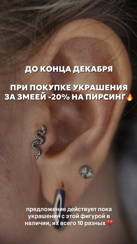 Преимущества: Делала в студии прокол Хеликс, очень долго решалась не эту процедуру. В итоге все прошло максимально комфортно: Екатерина все объяснила подробнейшим образом, успокоила и сделала все быстро и профессионально и , что очень важно, с соблюдением полной стерильности процедуры.